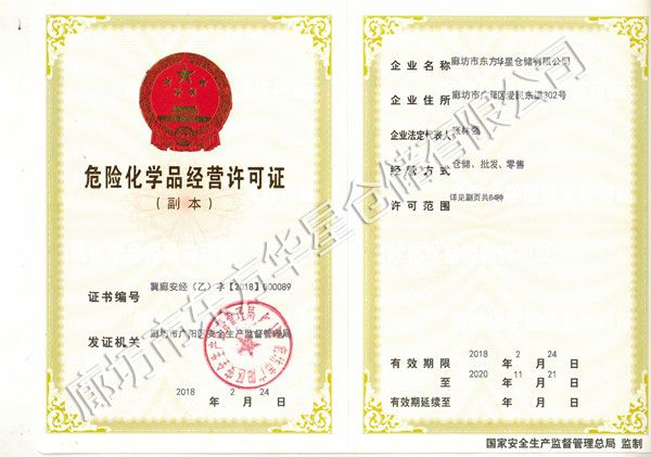 本公司危险品?是拥有合格的危险品化学品l营许可证的仓库, 是天z地区屈指可数的拥有完备资质和先q设施的大型危险品专用仓库。本公司h危险品储存资质许可证Q在q行危险品仓储作业中Q可提供完善的装卸机械设备,q有专用工P以确保危险货物的安全及完好无损。同Ӟ本公司还可根据用户需要,为用h供具有危险货物运输资质的q力Q以及以用户q输及保险业务等?/p>